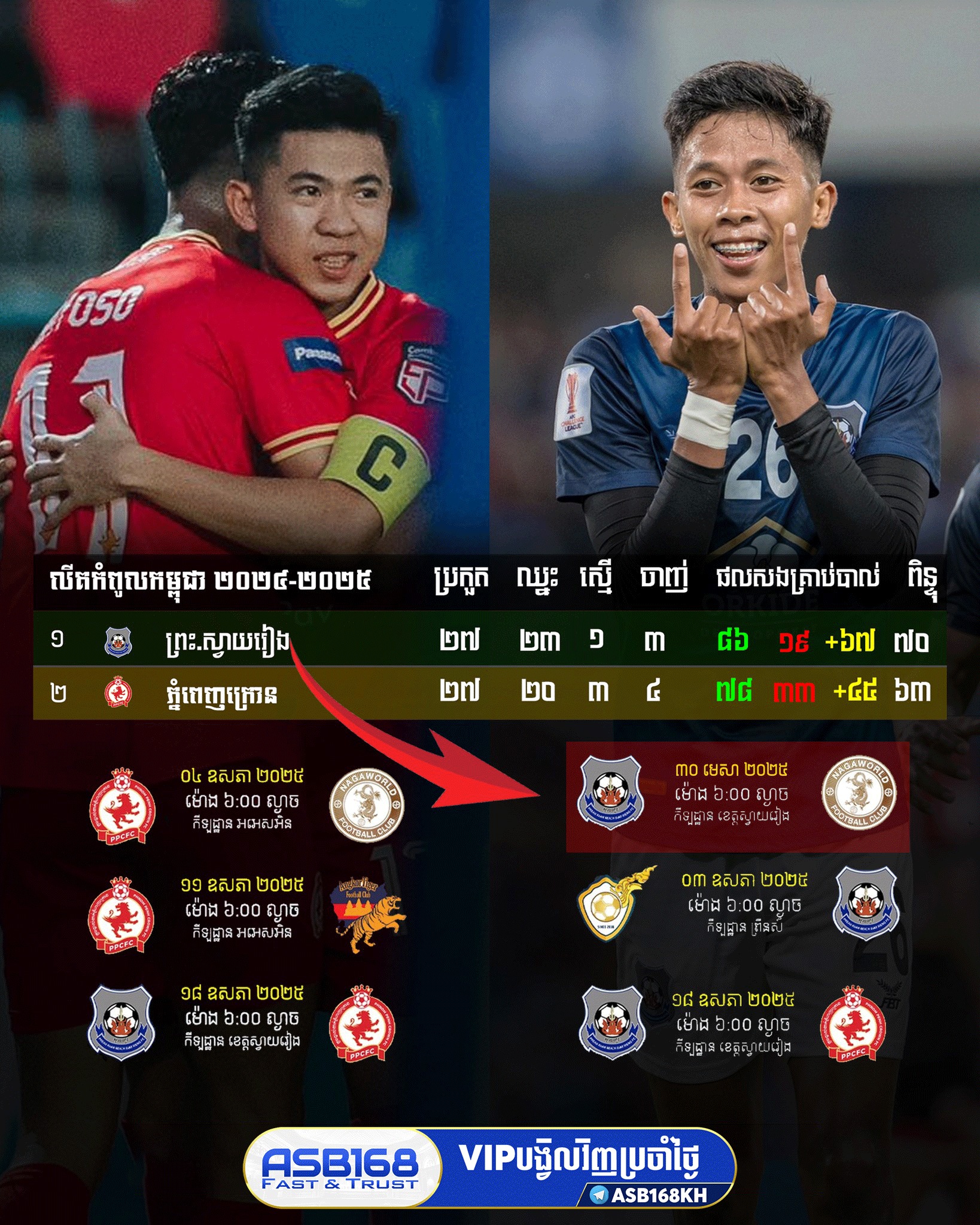 ស្វាយរៀង នឹងលើកពានក្នុងដីនៅថ្ងៃទី៣០ មេសា នេះ បើពួកគេយកឈ្នះណាហ្គាវើល