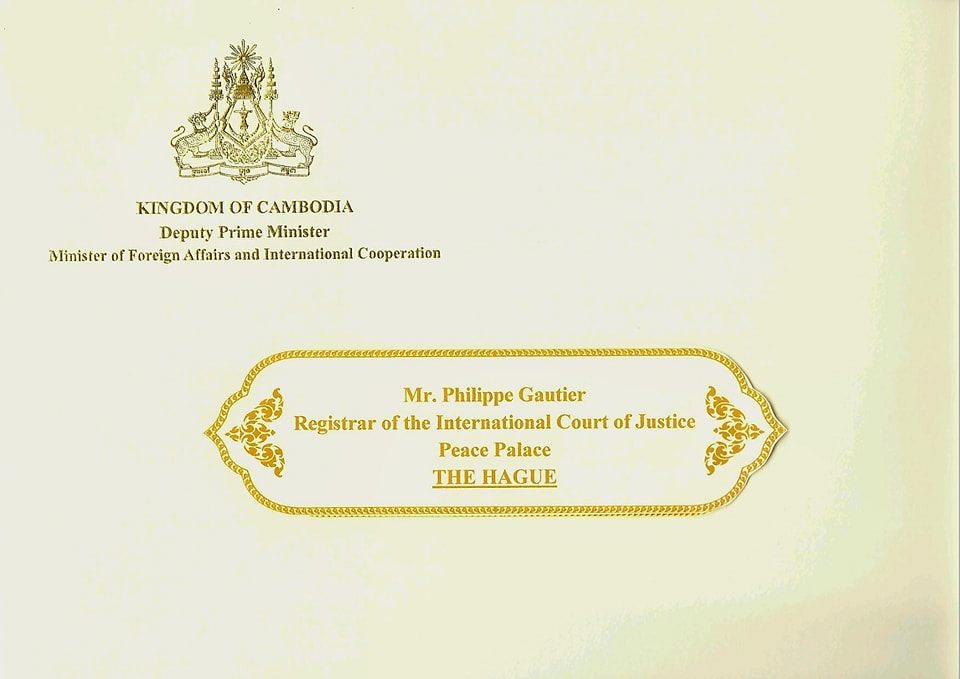 (Note: The Ministry of Foreign Affairs and International Cooperation has dispatched an officer to take the official letter in person to the Royal Embassy of Cambodia to the Netherland with a residence in Brussels. On the coming Monday, the Royal Embassy of Cambodia to the Netherlands will hand over the official letter in person to the International Court of Justice (ICJ) at the Hague.)
