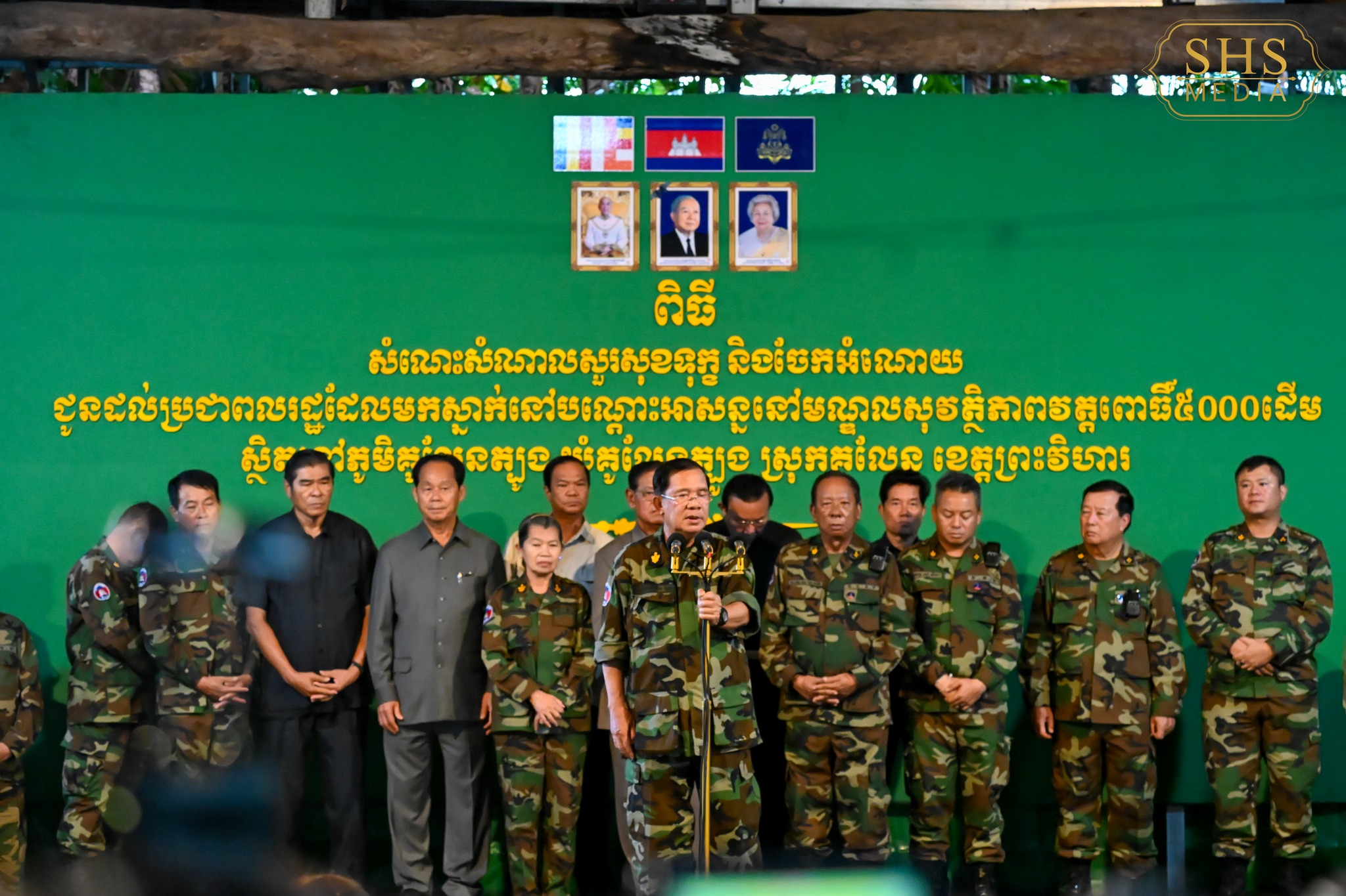 សម្តេចតេជោ ហ៊ុន សែន អញ្ជើញជួបសួរសុខទុក្ខនិងពិនិត្យស្ថានភាពរស់នៅបណ្តោះអាសន្នរបស់បងប្អូនប្រជាពលរដ្ឋ ដែលបានជម្លៀសដោយស្ម័គ្រចិត្តមកកាន់មណ្ឌលសុវត្ថិភាព វត្តពោធិ៍៥០០០ ក្នុងខេត្តព្រះវិហារ
