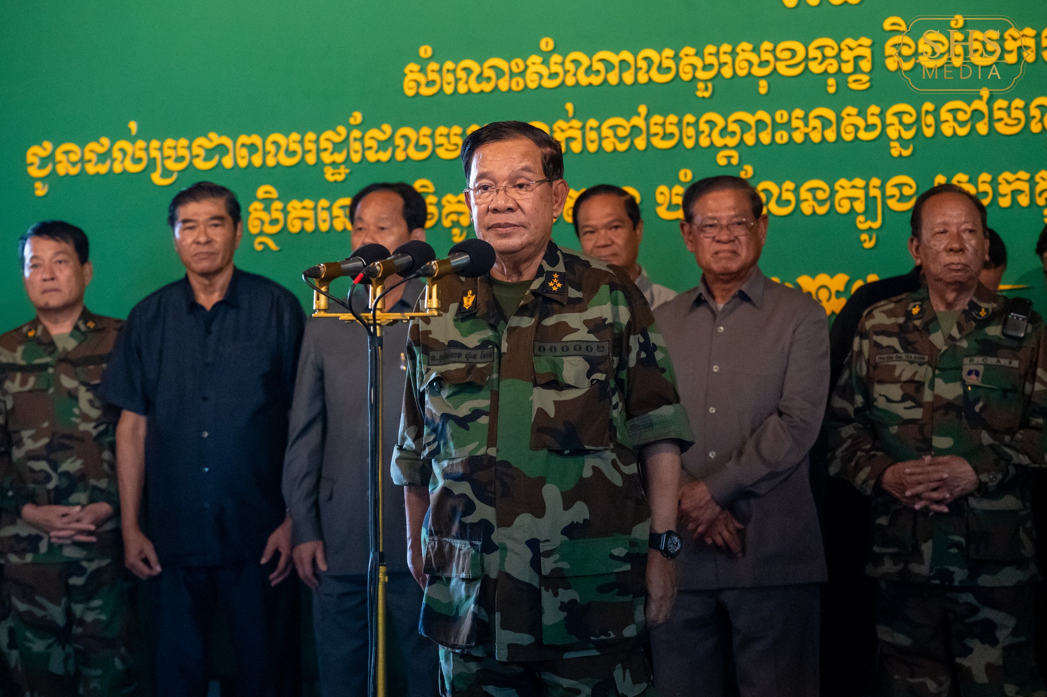 សម្ដេចតេជោ ហ៊ុន សែន ផ្ដើមថ្លែងទៅកាន់ប្រជាពលរដ្ឋនៅតំបន់ភៀសសឹកថា ប៉ុន្មានថ្ងៃមុននាយករដ្ឋមន្ដ្រីបានមកជួបពលរដ្ឋម្ដងរួចមកហើយ។ ថ្ងៃនេះឪពុកនាយករដ្ឋមន្ដ្រីបានជួបពលរដ្ឋម្ដង។ សម្ដេចតេជោបាននាំយកនូវព្រះរាជបណ្ដាំសាកសួរសុខទុក្ខពីសំណាក់ព្រះមហាក្សត្រ និងហ្លូងម៉ែ ជូនប្រជាពលរដ្ឋនៅតំបន់ភៀសសឹកទាំងអស់ដែលព្រះអង្គទាំងទ្វេតែងខ្វាយខ្វល់អំពីសុខទុក្ខពលរដ្ឋ និងកងទ័ពគ្រប់ពេលវេលា។ សម្ដេចតេជោ ហ៊ុន សែន បានមានប្រសាសន៍បន្តថា វត្តមានសម្ដេចនៅតំបន់ភៀសសឹក បាននឹកឃើញនូវអ្វីដែលហៅថាសន្ដិភាព និងអ្វីទៅដែលហៅថាសង្គ្រាម។ សម្ដេចសម្ដែងនូវការអណោចអធម៌ ចំពោះអតីតកាលរបស់កម្ពុជា ដែលពេលនេះវិលត្រឡប់មកវិញដោយសារការឈ្លានពានរបស់ប្រទេសជិតខាង។