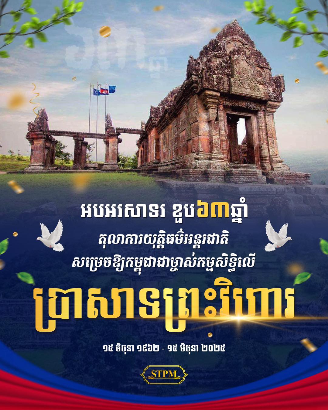 Celebrating the 63rd anniversary of the International Court of Justice (ICJ) ruling, which found that the Preah Vihear Temple is situated in territory under the sovereignty of Cambodia. June 15, 1962 - June 15, 2025